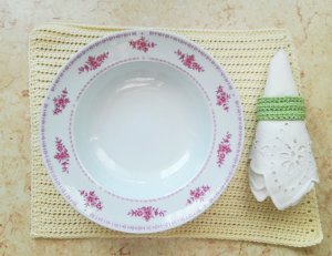 Egy tányéralátét és egy szalvétagyűrű mintát hoztam ehhez. Kétféle pálcát szükséges ismerni hozzá, és nagyon hamar elkészíthetőek. Nézzük is a leírásokat!