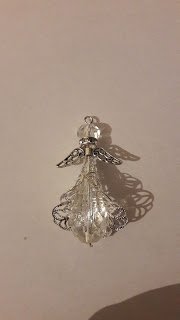 A következő díszítésnek angyalkákat választottam, melyek jól mutatnak a fenyőfán is, de magukban vagy csoportosan mutatnak a legszebben. Erre jó megoldás, ha néhányat elszórtan az ablakba akasztunk, vagy kisebb-nagyobb karikára erősítjük őket, amelyet aztán lelógatunk valahonnan.