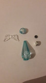 A tetejére szintén gyöngykupak került meleg ragasztóval, illetve kék és zöld selyemszalagból masnik.