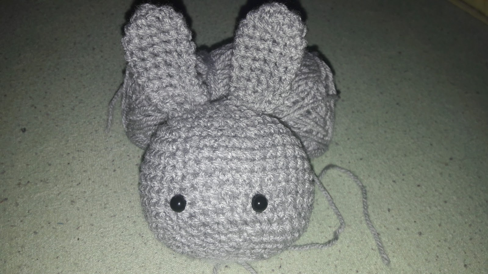 Pénteken megkaptuk a fej leírását, tegnap pedig a fülekét is. Azon nyomban belekezdtem, és egyből két példányban készítem Őnyulaságát, hogy lássam a különbséget a 2 fonal között.