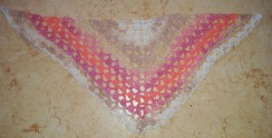 A jelenlegi darab pedig a maradék fonalam felhasználására van. Nagyon tetszenek a színátmenetes fonalak, ez pedig még bambuszból is készül, így nyárra ideális kiegészítő készülhet belőle. Mivel általában is szeretem a sálakat, kendőket, és az alapja egy kissé átalakított nagyikocka (amiből csodálatos dolgok kreálhatóak), ami az egyik kedvenc mintatípusom, így mi másba is kezdhettem volna? A minta a Gombolyag magazin 2016/2. számából van, és Niké kendőnek hívják.
