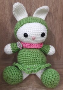 Matilda egy bájos nyuszilány, aki fűzöld ruhácskájában várja a tavaszt, hogy kis barátaival tojások után kutathassanak a virágok között. A leírás az amigurumi.today oldalán található. Elérhető megvásárolható és csak olvasható, ingyenes verzióban is. Én most utóbbit választottam.